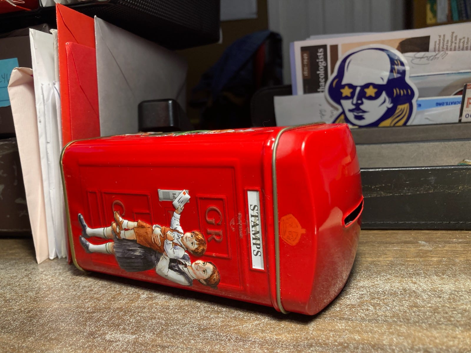 The entire year, we save change in a red, London telephone bank. That red bank sat on a deep wooden china cabinet that always had a bowl of fake red apples. That cabinet would always shake due to my brother’s spot at the kitchen table and his tick of gyrating his leg up and down on the floor. The table and cabinet would wail and cry, and I would look at him from my seat, glaring at him in annoyance.
